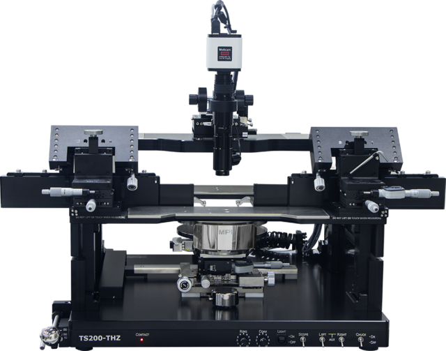 MPI TS150–THZ engineering probe system is a dedicated, cost effective, manual probe system designed especially for precision analysis of substrates and 150 mm wafers in sub THz range. The system is extremely stable, with a large probe platen, and a low-profile design. Each of these essential elements are required to support a wide variety of RF and mmW applications such as broadband up to 220 GHz, banded solutions up to 1.1THz, load-pull and RF noise.