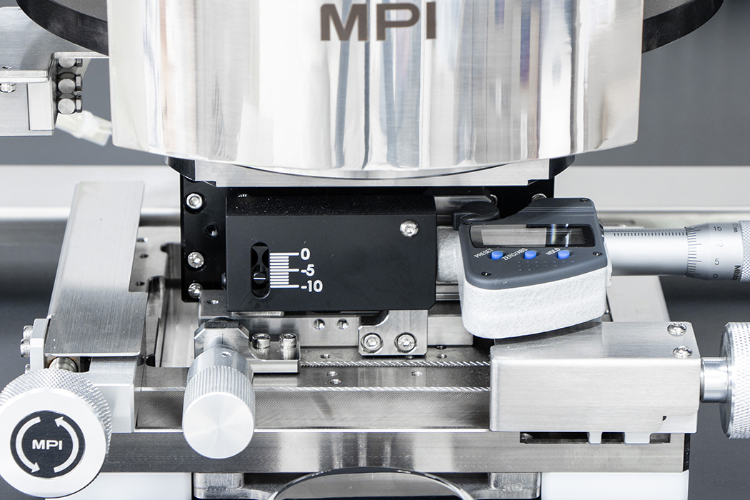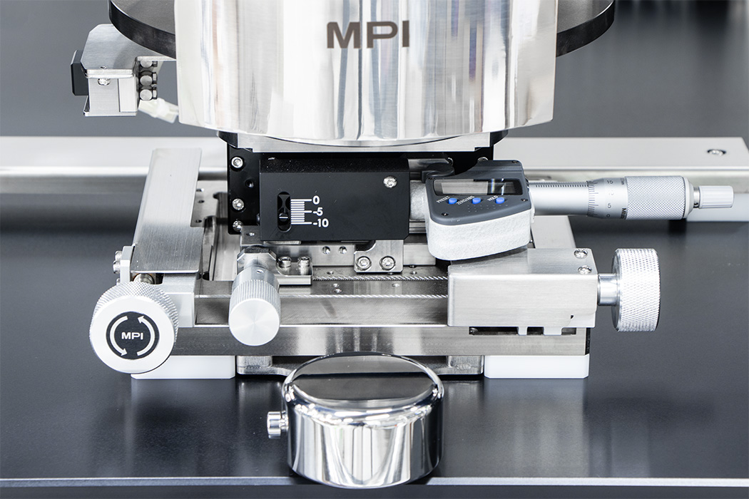The MPI unique air-bearing stage design, with simple single-handed puck control, provides unsurpassed convenience of operation for fast XY navigation and quick wafer loading without compromising accurate and fine positioning capability with the additional fine and accurate 25×25 mm XY-Theta micrometer movement.